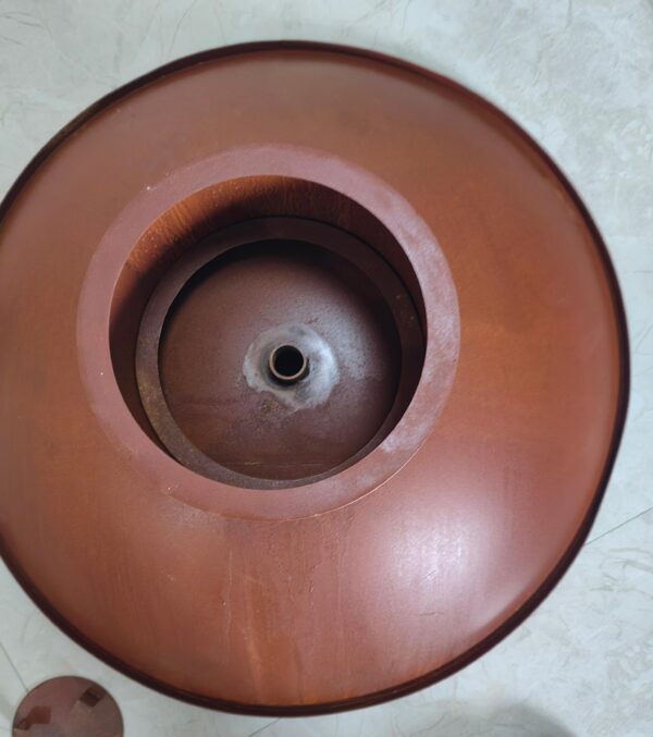 Ben je op zoek naar een prachtig en rustgevend waterelement voor in jouw tuin? Deze grote cortenstalen waterschaal, aangeduid als het 100cm model met een royale afmeting van 100 bij 23 centimeter, biedt een schitterende waterafloop rondom. Wat deze schaal uniek maakt, is de speciale rand van 15 millimeter die naar beneden wijst. Hierdoor valt het water voor de volle honderd procent strak van de rand af en loopt er niets ongewenst via de onderkant terug. Daarnaast is de schaal voorzien van een slimme schijf boven de waterinstroom. Deze verdeelt het water gelijkmatig en voorkomt dat het te veel gaat golven, wat zorgt voor een mooi, rustig en kabbelend effect. Je kunt deze indrukwekkende waterschaal prachtig plaatsen boven een strakke waterbak, of hem op natuurlijke wijze in een vijver integreren.