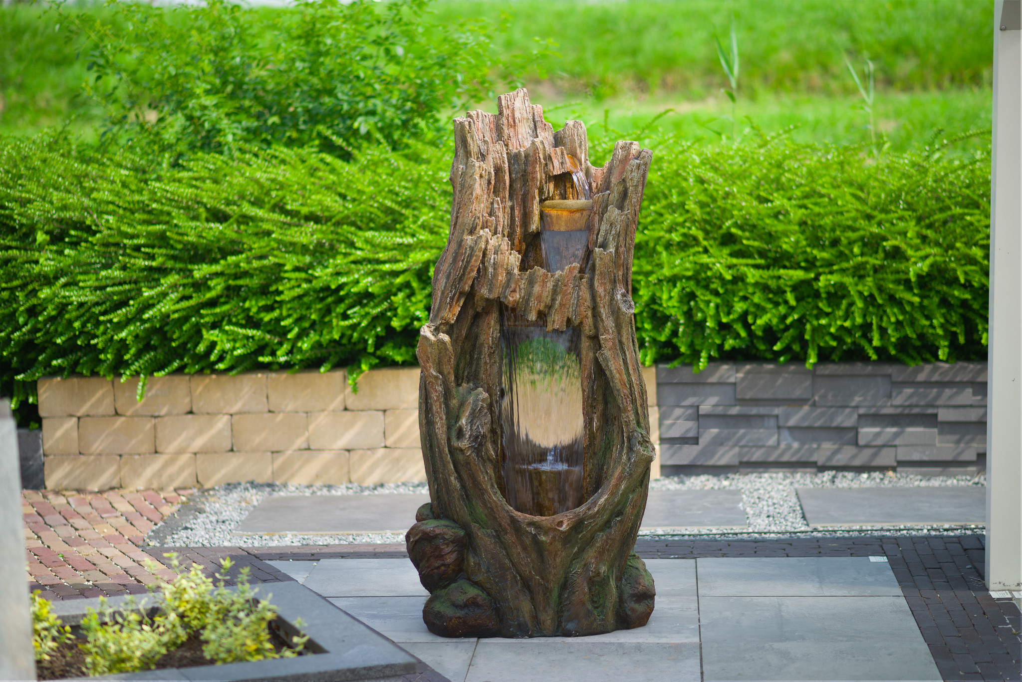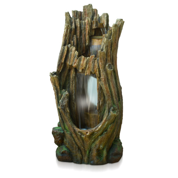Een echte blikvanger voor in uw tuin, huis of bedrijf. Deze indrukwekkende grote opengewerkte boomstam met natuurlijke uitstraling, van stevige Polyresin. Deze waterval wordt prachtig verlicht door middel van 4 ledunits met elk 8 diodes. Is ook eventueel geschikt voor binnen. Deze waterval herbergt zelf zijn water, er is dus geen graafwerk nodig. Voorzien van rvs voor een duidelijke weergave van het stromend water.