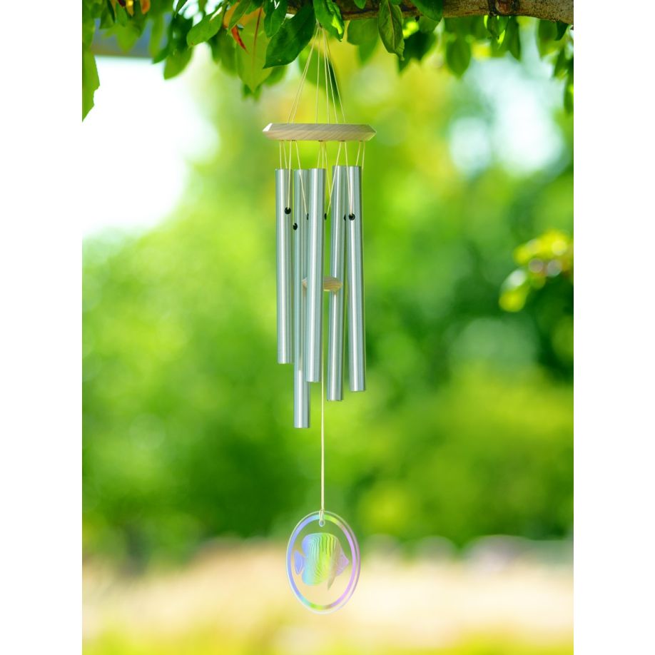 Dit model met diverse kleuren en een vis als thema is een prachtige toevoeging in uw tuin als u op zoek bent naar een windgong met een sprankelend en fantasierijk karakter. De staven zijn gemaakt van aluminium.