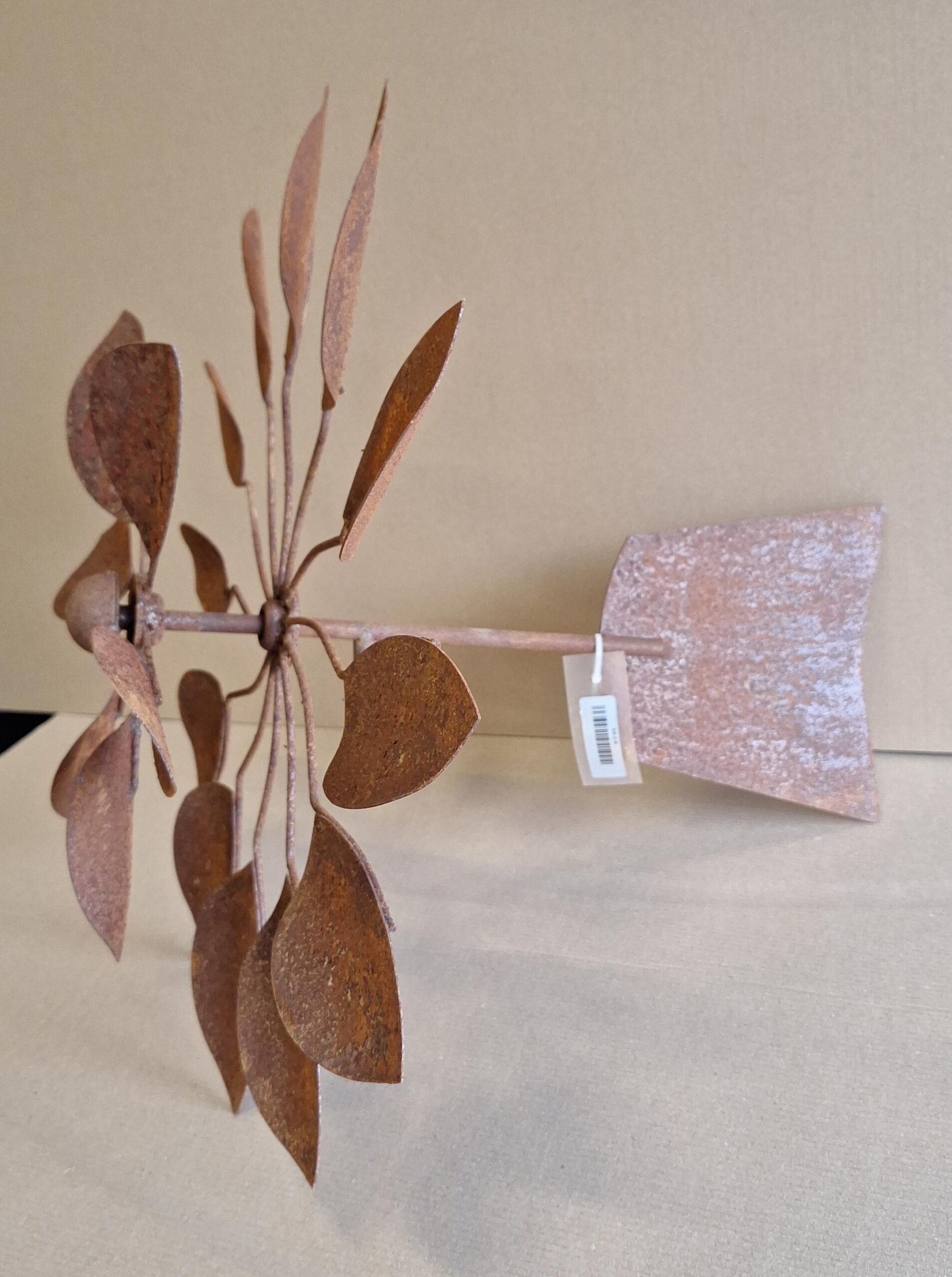 In elke tuin zal deze prachtige roestige windmolen met licht gebogen ovale vormpjes prachtig staan.