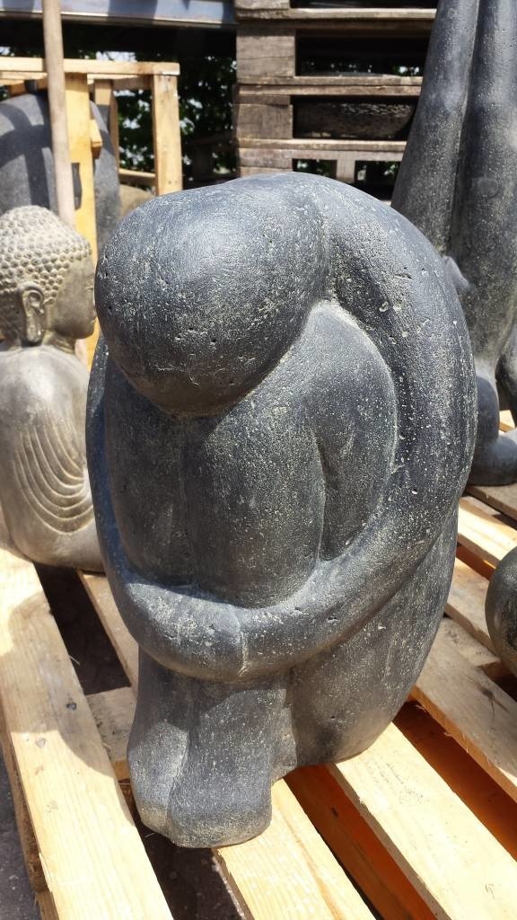 Een abstract beeld met opgetrokken benen, een bekende houding voor de yoga beoefenaars. Beeld is een aanwinst voor uw huis of tuin. Beeld is gemaakt van van hoogwaardig gietsteen in een zwart/bruine kleur, zodat u er jarenlang plezier aan zult beleven. Kleur kan enigzins afwijken van de foto.