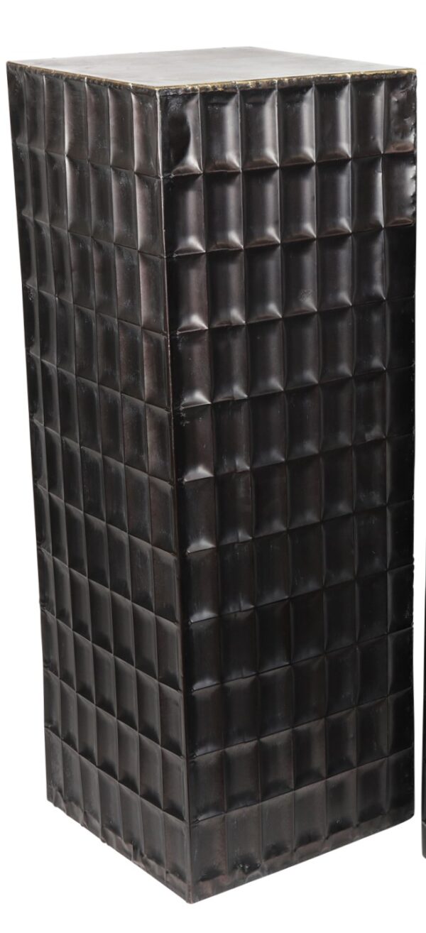 Een moderne sfeermaker in uw huis. Deze sokkel van metaal heeft een ruitjes patroon wat de zuil een speels maar modern effect geeft.