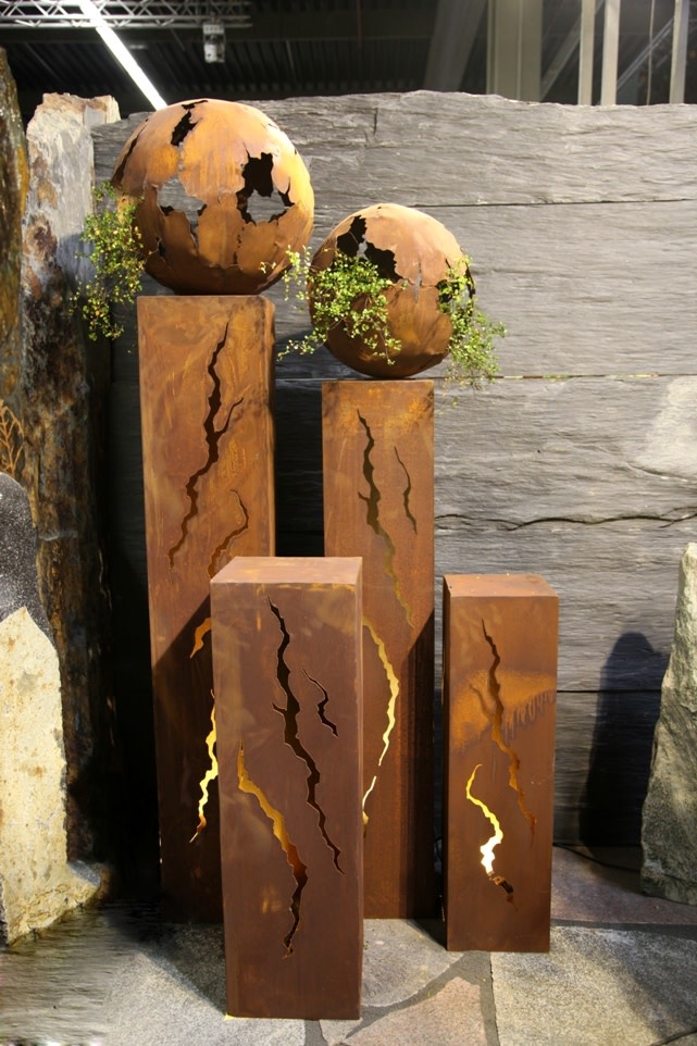 Een aparte sfeermaker in uw tuin, deze verlichte zuil toch wel noemen. In deze sokkel met scheuren en krullen, waardoor in het donker warmwit licht schijnt. Deze kolom is gemaakt van 2mm dik onbehandeld ijzer, wat een prachtige en tijdloze (roest)bruine kleur geeft.